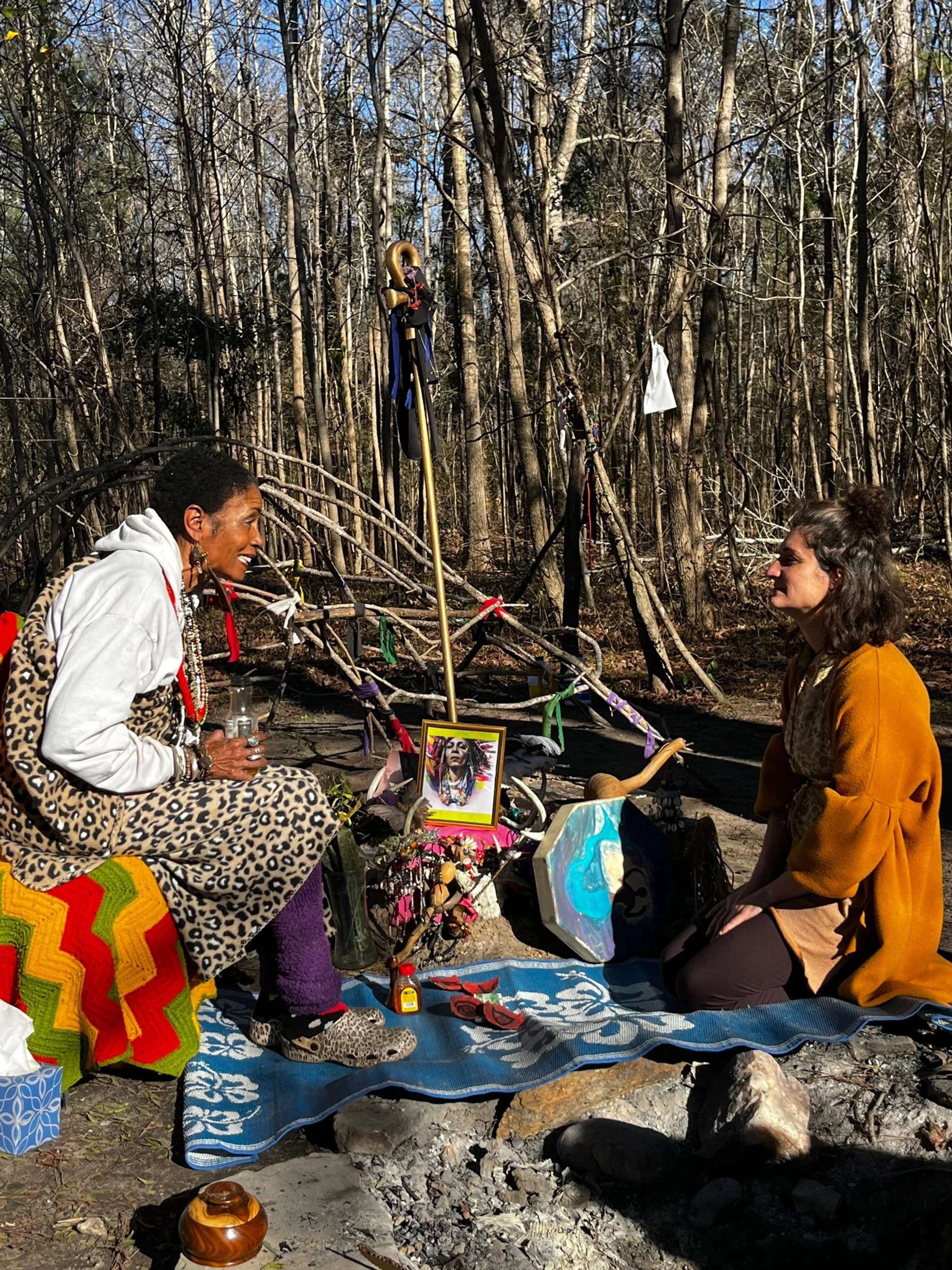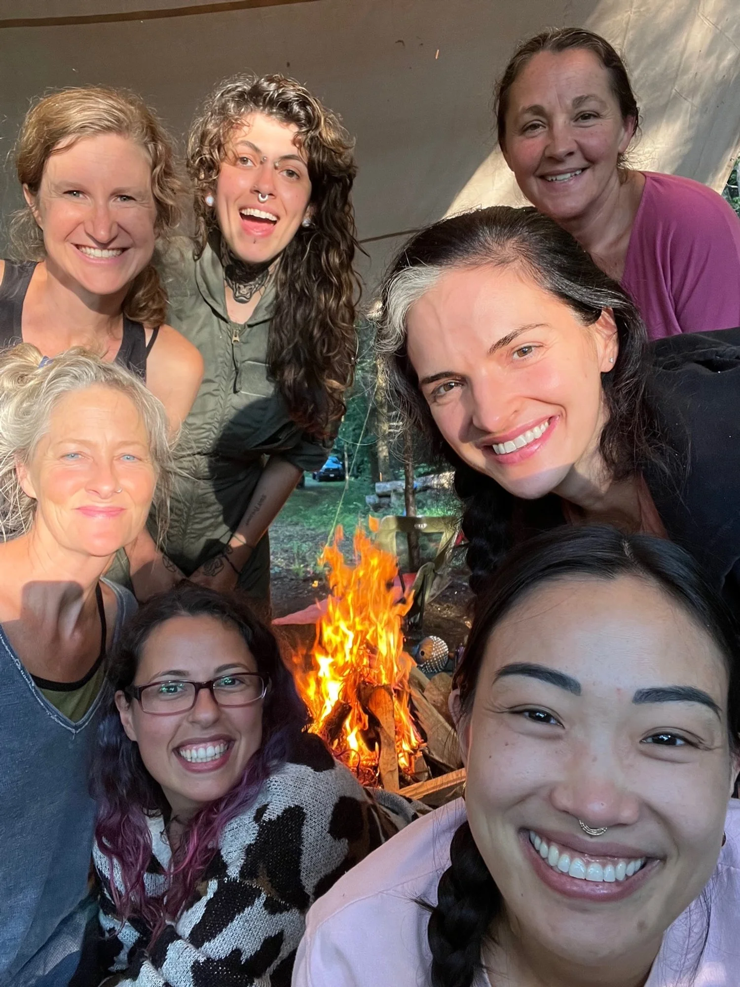 In addition, each year our community has the opportunity to meet in the beautiful Blue Ridge Mountains near Hot Springs, North Carolina. Women gather on 14 acres of land, setting up tents and sitting around the fire - to laugh, share stories, learn resources, and follow the signs of the land. We take time to rest, go inward, get playful, and explore what we are compelled to follow. Everyone is invited to carve wood, try friction fire, weave, or make symbolic power pieces to wear. This time in the woods allows us to feel into our primal selves and our inherent sisterhood, free from any male-dominated spaces. We share meals and create a group-designed ritual.